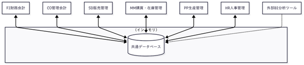 特にクラウド対応のSAP S/4HANAでは、メモリ型データベースを採用し、膨大なデータ処理を高速化しています。